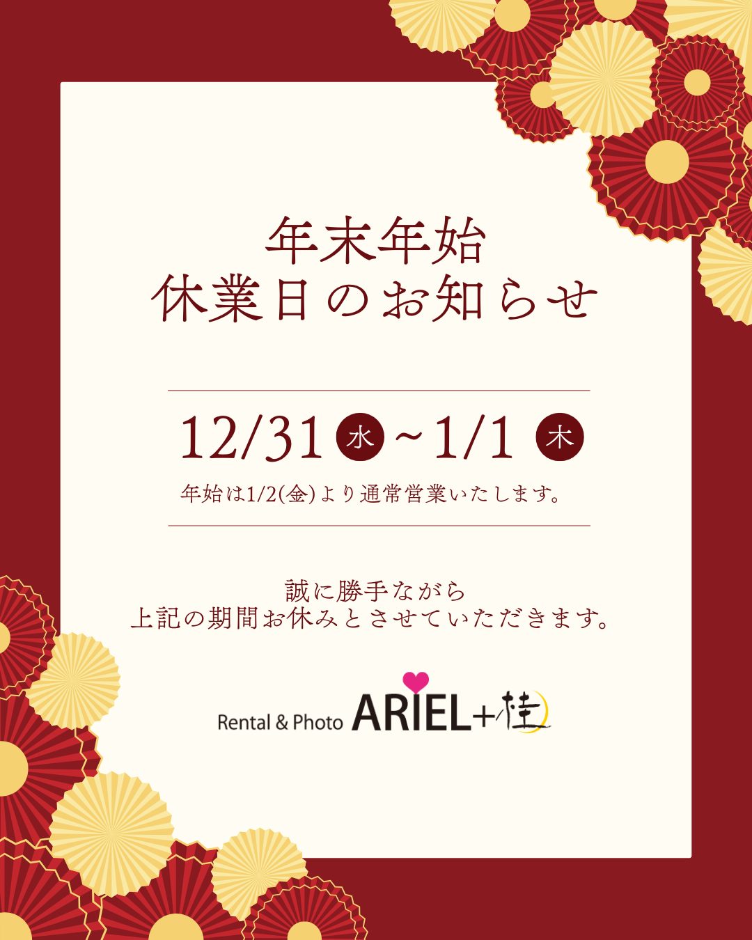 年末年始は12/31・1/1の2日間のみ休業とさせて頂きます。