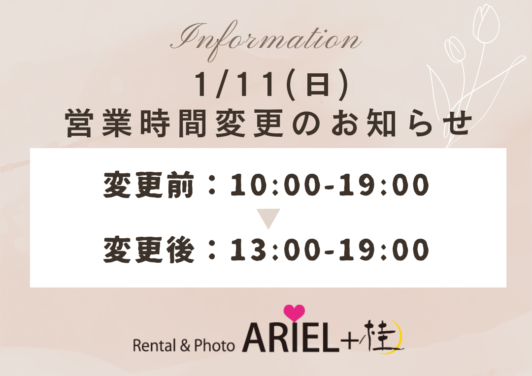 ハタチの集い当日美容のため、通常より開店時間が遅くなります。