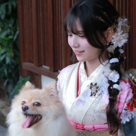 成人式・振袖・犬・レインボー店